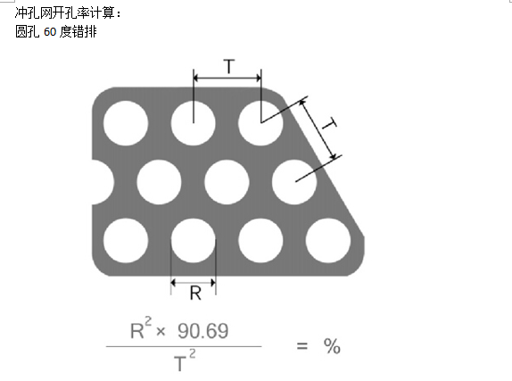 根据以上的信息及以下的公式,我们可以得出这种规格的冲孔网的开孔率为